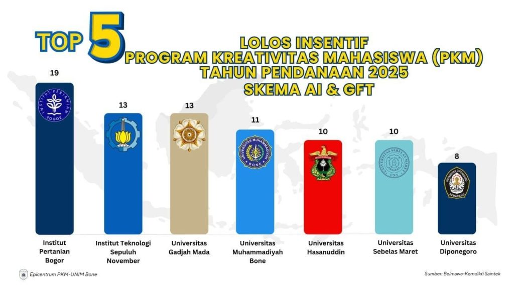 Bone, July 31, 2025 — Muhammadiyah University of Bone (UNIM Bone) has once again recorded a brilliant achievement at the national level. In an official announcement released by the Directorate General of Learning and Student Affairs (Ditjen Belmawa) of the Ministry of Higher Education, Science, and Technology, UNIM Bone successfully secured the 4th National Rank in the 2025 Student Creativity Program (PKM) Incentive for the Artificial Intelligence (AI) and Green Future Technology (GFT) schemes.